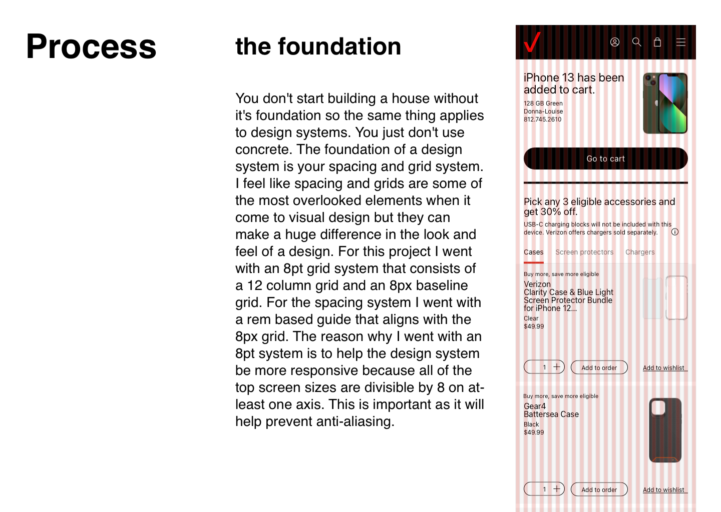 A design system is a collection of reusable components, guided by clear standards, that can be assembled together to build any number of applications, and the need for them go hand in hand with the need for scale, efficiency, and consistency in Design. They basically bring order to chaos. I created the V3.0 Design System to create that order at Verizon. In this project you will see some of the components I built for this design system but a design system is much more then just a component library. If built correctly it is the lifeblood of the shopping experience. Take a look at what I put together below.